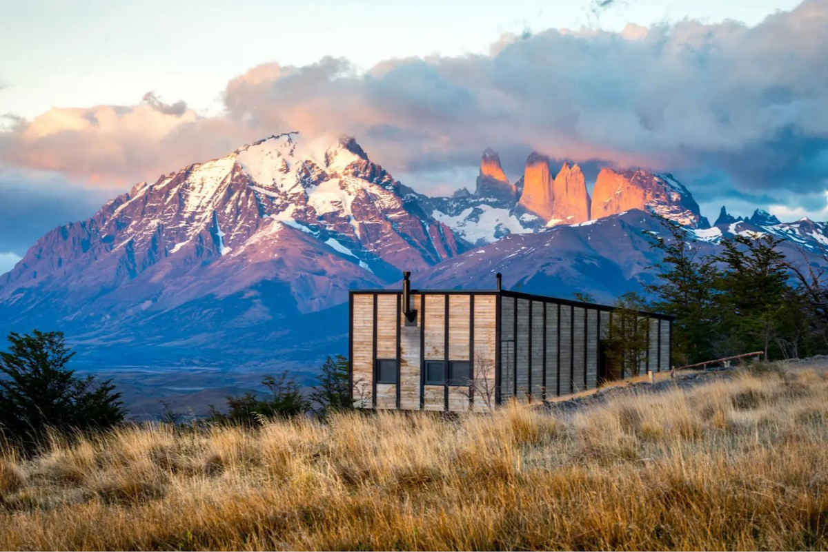 I utkanten av nationalparken Torres del Paine i Patagonien glittrar rustikchica Awasi ikapp med sjön Lago Sarmiento bredvid.