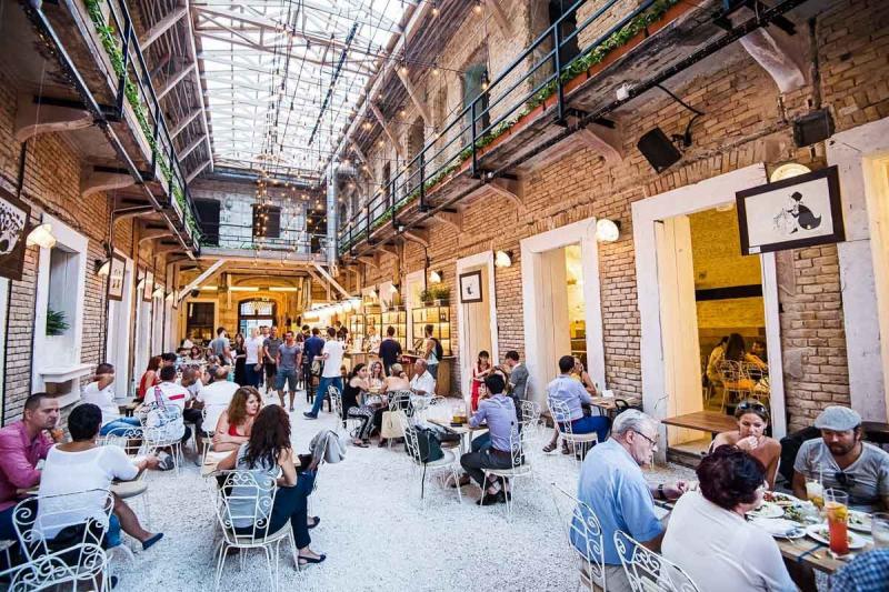 Du har säkert hört talas om Budapests trendiga ”ruinbarer” som finns gott om i det judiska distriktet, alltså gamla rivningshus som stått tomma sedan andra världskriget och på senaste åren omvandlats till hippa nattklubbar av kreativa ungrare. Mazel Tov är vad jag skulle kalla en ”ruinrestaurang” och den första av sitt slag. Från gatan syns det knappt vad som gömmer sig där inne, men stig in och möts av en urban, chic miljö och en helt fantastisk innergård. Mazel Tov har blivit ett välbesökt ställe av Budapestbor, tack vare dess sköna stämning och goda, israeliska kök. På menyn kan du välja bland hummustallrikar, kyckling shawarma, shakshuka och många vegetariska alternativ. Se till att boka bord i förväg.