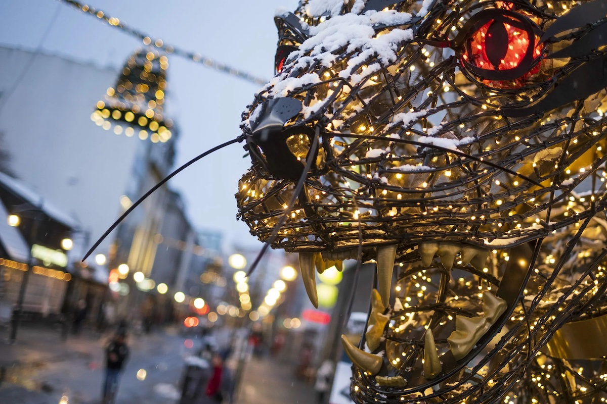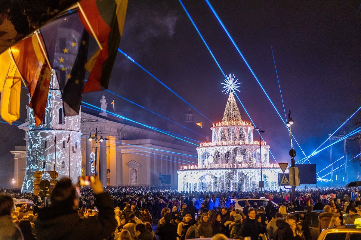 Julfirandet i Litauens huvudstad är förbryllande förbisett. Det synnerligen påkostade högtidlighållandet tycks inte veta några gränser, till och med stadens tv-torn förvandlas till en gigantisk gran.