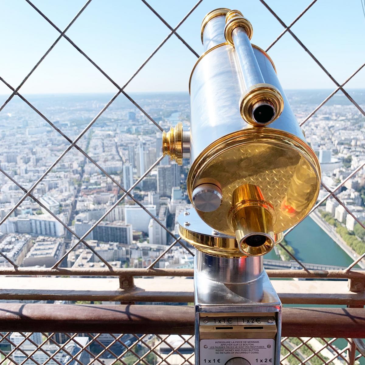 Detta en-gång-i-livet kulturmärke, som alla Parisresenärer vill åka upp i, kan bli en riktig tidstjuv. Eiffeltornet bjuder på en minnesvärd upplevelse – men också långa köer med sina 7/sju miljoner besökare årligen. Det finns två sätt att komma runt detta problem. Det ena är att köpa biljetter på nätet flera veckor innan och få en preciserad hisstid. Det andra alternativet är att välja trapporna vid tornets södra ingång. Här är det oftast ingen kö att tala om. Det är 674 trappsteg upp till Eiffeltornets andra etage och därifrån finns hiss till toppen.