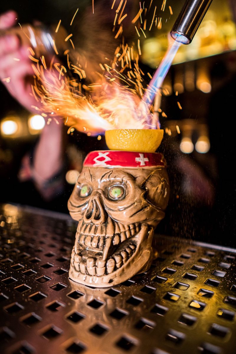 Här är nämligen specialiteten tropiska drinkar, och man räds inte att ta ut svängarna. Med utgångspunkt i beskrivningar som “mjuk, försiktig och fermenterad” blandas otroliga påhitt som sedan serveras i ännu mer påhittiga kärl.