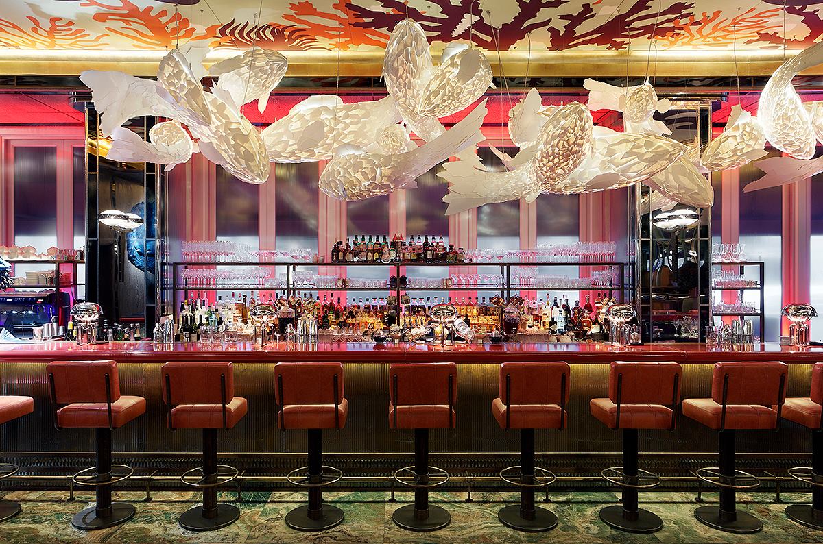 En enastående lokal med högt i tak, lyxiga draperier och maffiga kristallkronor, där väggarna är täckta med stora som små målningar och fotografier försedda med guldramar och den glittrande baren stoltserar på ena sedan av lokalen. Välj en god klassiker till middag eller nöj dig med en lyxig drink vid baren.