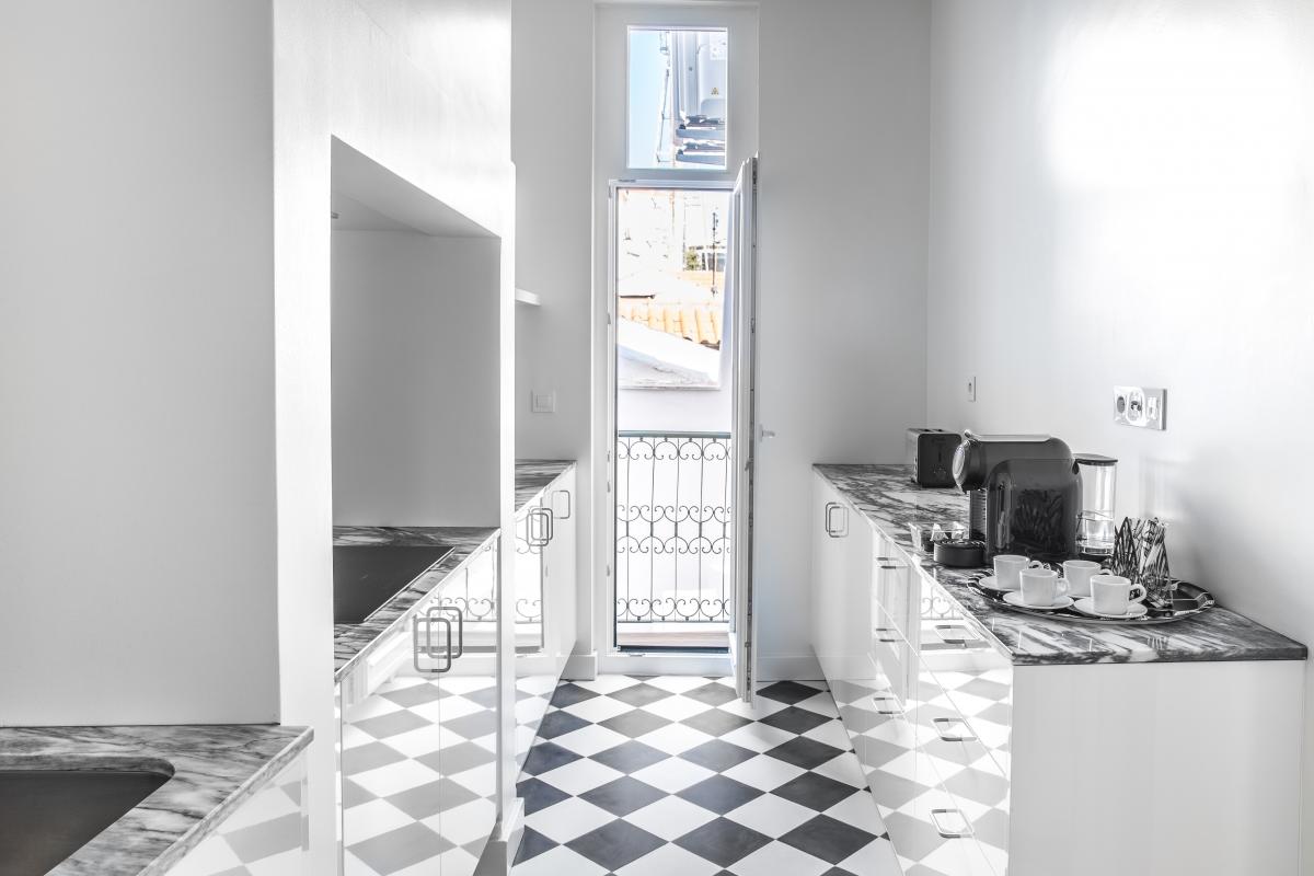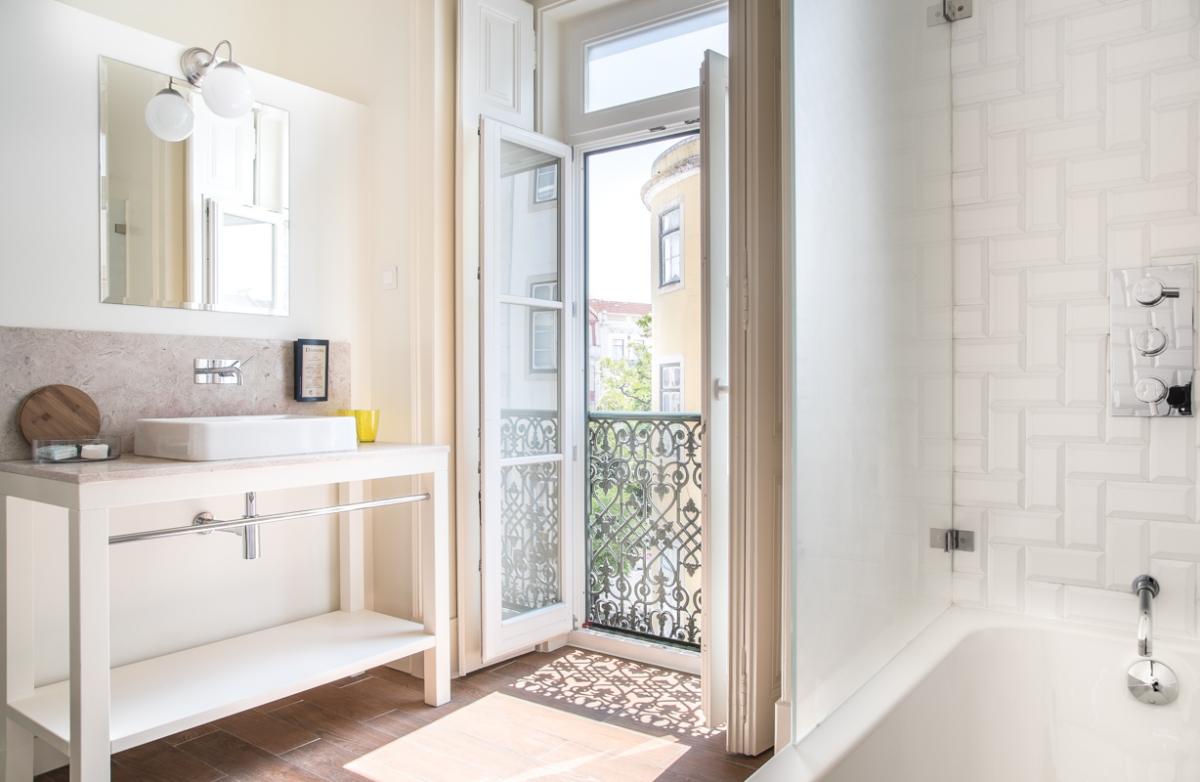 Vår Uber stannar vid en krusidullig fontän, på vars bakdel ett grandiost hus i rött vilar. Ett landmärke i staden. Blott en liten plakett på den mörkgröna ytterdörren stoppar oss från att tro att chauffören kört fel: Casa Chafariz. Här knappar vi in den personliga kod vi fått per mail – här behövs inga nycklar – och möts av en vacker, brant trappa med genomtänkt belysning i fothöjd och avancerar upp till vår våning. Byggnaden består av fem bedårande lägenheter, i vissa fall hela våningar, utspridda på fyra våningsplan. Och ja, det finns hiss från första våningen om man vill spara benen till Lissabons kuperade gator. Vi flyttar in i en lägenhet på 108 kvadratmeter med totalt två sovrum, sex sängplatser, tre toaletter, sex franska balkonger, kök och vardagsrum – här kan man ledigt bo tre par, med storfamiljen eller det lilla kompisgänget. Med tanke på det är prislappen inte mycket att orda om – här kan man övernatta från 160 euro natten.