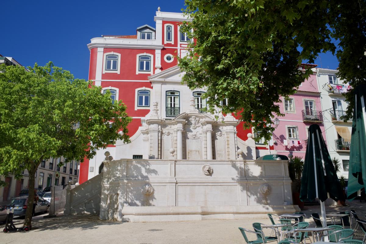 Casa Chafariz har en spännande historia och den börjar med en fontän. 1760 byggdes den allmänna fontänen Chafariz da Esperanca, för att förse invånarna i området med färskt vatten. Förutom att fontänen var effektiv och användbar var den också väldigt vacker att titta på. 1910 klassades fontänen som ett portugisiskt nationalmonument. Mot slutet av 1800-talet uppfördes ett bostadshus i anslutning till fontänen – Casa Chafariz. Insidan av byggnaden har renoverats varsamt och man har tack och lov varit klok nog att bevara den fantastiska takstuckatur som pryder så gott som varje rum i byggnaden. På grund av den kraftiga jordbävning som ägde rum 1755 och som ödelade stora delar av Lissabon, började man bygga hus på ett nytt sätt – inne väggarna fogades till exempel stockar ihop i stjärnmönster för att vara flexibla vid vibrationer.
