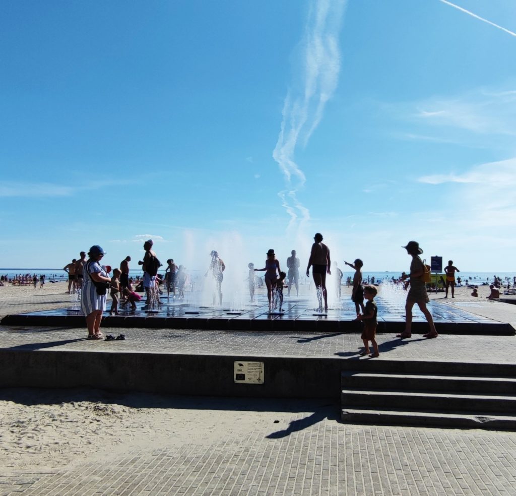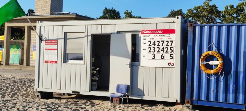 När vi ligger på stranden sprakar det till i högtalarna. Du får inte dricka alkohol eller röka på stranden. Du måste ständigt ha uppsyn på dina barn och luftmadrasser är förbjudna. Budskapet skickas ut på litauiska, engelska och ryska.