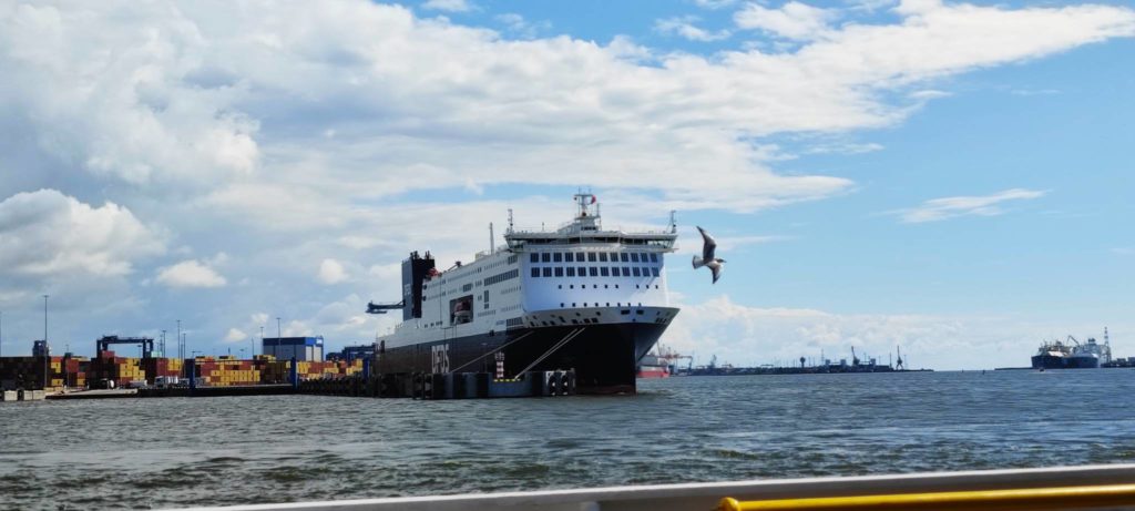 Det är stressigt eftersom incheckningen i Karlshamn stänger hela 90 minuter före avgång. Tjugo minuter försenade sladdar vi in på hamnområdet och när vi ska checka in uppstår nästa “utmaning”.