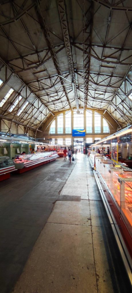 “Vår” strandbar hade mycket att göra, men vem har bråttom en dag som denna? Nej att stå i kö några minuter för öl, omelett, kaffe och färskpressad juice är bara en slags meditation. Denna gång tänkte vi på att smörja in oss ordentligt och blev följaktligen inte lika röda som kräftor. Efter några timmars sollapande och bad med fjärils- och delfinsim tog vi bilen in till centralmarknaden bredvid centralstationen. Fem stora gamla flygplanshangarer, en med kött, en med fisk, en med gourmet-varor, kläder och krimskrams och utanför enorma mängder grönsaker i små stånd.