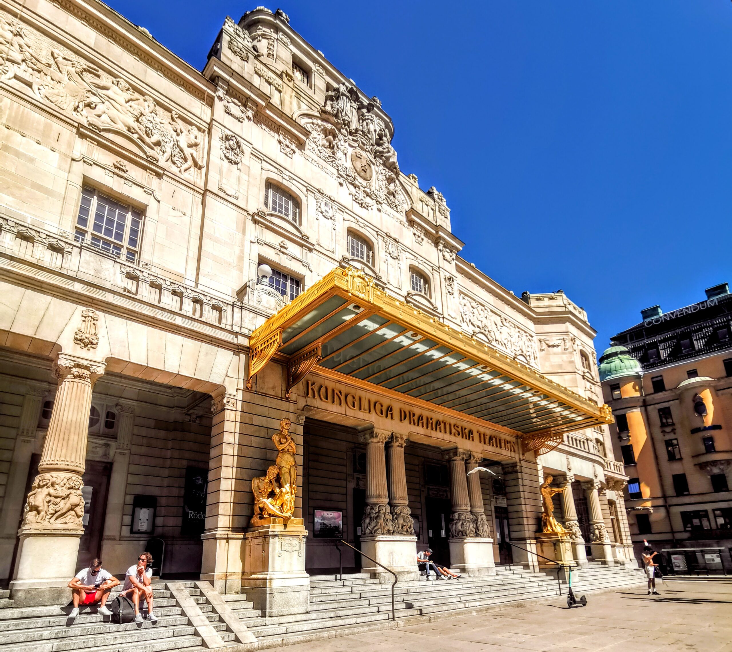 Dramatens trappa är en av stadens mest centrala platser. En våning upp finns den lite hemliga terrassen som tyvärr är stängd sommaren 2020, men annars väl värd ett kafébesök för utsikten. Trappan och terrassen ligger i söderläge och så länge solen skiner, så skiner den här. Blandat klientel. Är du från vischan och vill spana på kändisar finns det inte ett bättre ställe. Även ur-stockholmare sitter här och spanar och lapar glass från Sven-elva-butiken på hörnet.