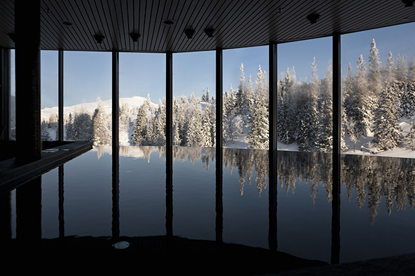 Copperhill Level Spa & Health Club i Åre handlar om naturnära och avskalad njutning; här kopplar man av med olika bad medan man betraktar den vackra fjällnaturen genom stora fönster.