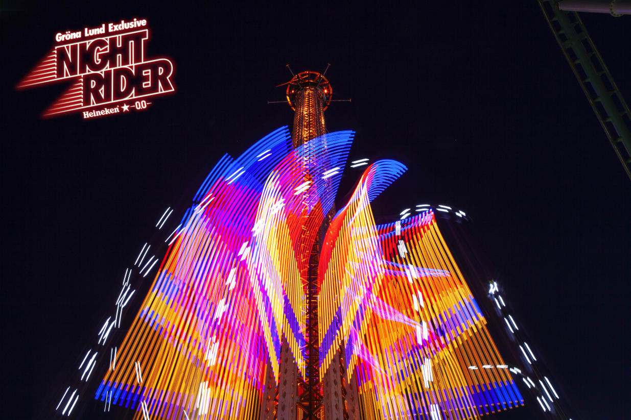 Under sex utvalda sommarkvällar med start den 19 augusti öppnar Gröna Lund upp sina mest populära attraktioner för exklusiv kvällsåkning mellan kl. 22.00 och midnatt. NIGHT RIDER är en helt ny upplevelse där gästerna får stanna kvar när parken stänger och känna hur musiken höjs när solen går ner.