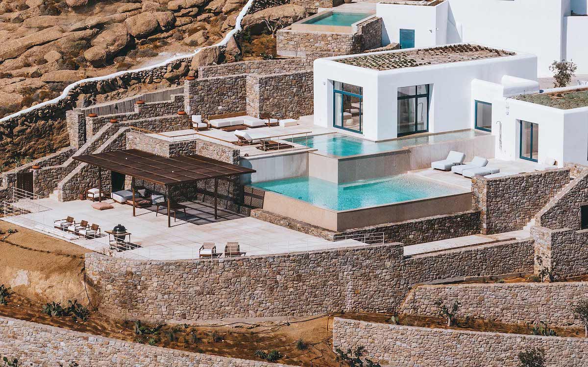 Ligger på en av de mest avskilda delarna av ön, ovanför en egen privat strand. Har en 110 meter lång infinitypool vid en klippa med fantastisk utsikt. Att ta sig till den festtunga sidan av Mykonos är enkelt, med en privat flotta av båtar och yachter som är tillgängliga för charter. Öppnar 10 maj.