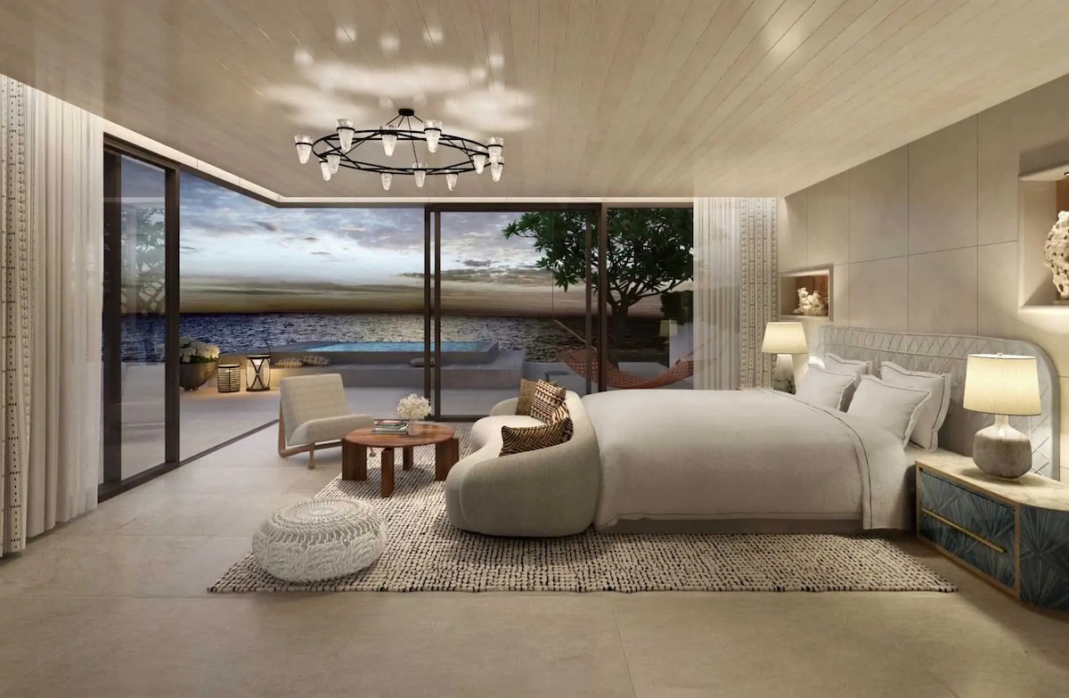 Strandresorten kommer att ha 99 rum, inklusive 48 poolvillor, några med två eller tre sovrum perfekta för familjer. Villorna är inbyggda i den kuperade terrängen och erbjuder en känsla av avskildhet. Fem restauranger och barer, en inomhus-utomhuspool med utsikt över bukten, fyra golfbanor och ett spa. Invigs 15 augusti.