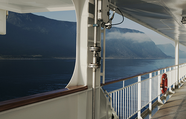 Jag syftar inte på kafeterian som sådan – i rent interiör mening är den på intet sätt någon storslagen upplevelse. Det är däremot den häpnadsväckande utsikten. I maklig takt puttrar fartyget ut från Bergens hamn och de fjäll och sluttningar vi storligen beundrat från land ter sig nu än mer imponerande. Det går inte annat än att villkorslöst kapitulera inför fjordlandskapets skönhet.