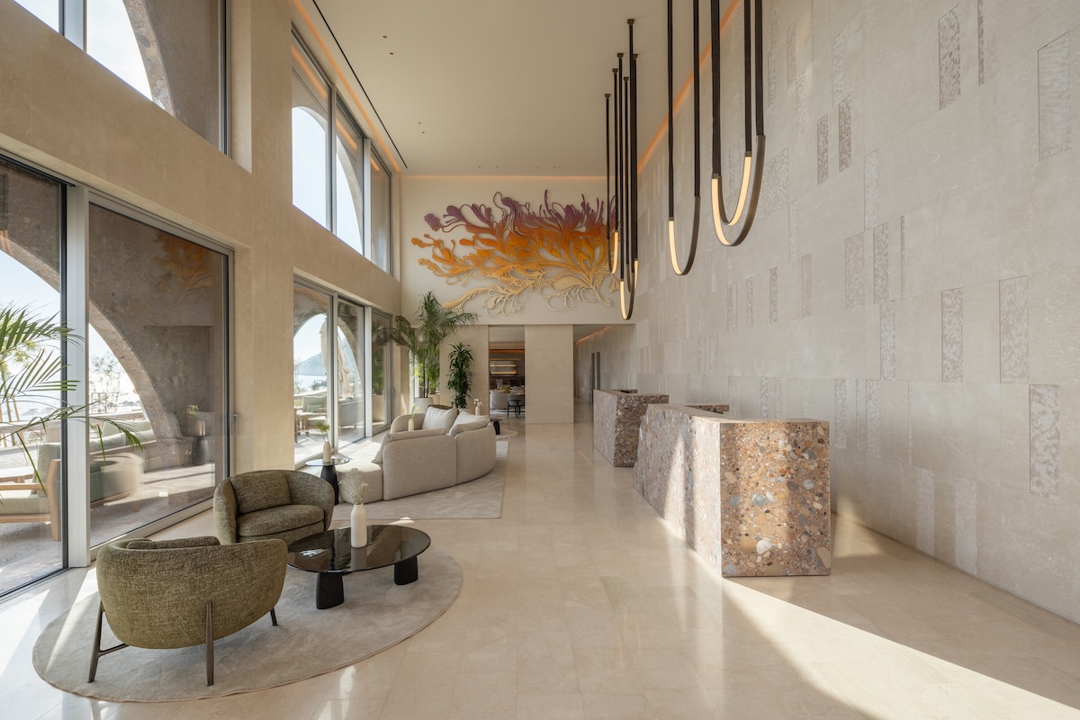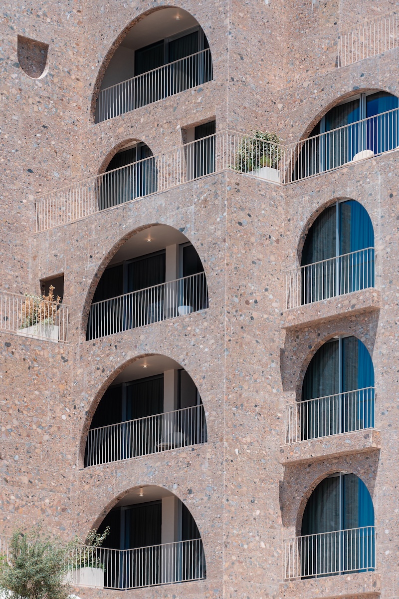 Green Coast Hotel är ritat för att vara i samklang med omgivningen och arkitekterna har hämtat inspiration från illyrisk, romersk, bysantinsk och osmansk byggnadskonst. Fasader i naturnära nyanser och rå sten gör till exempel att byggnaden smälter in i klipplandskapet. Totalt finns 131 rum, varav fem sviter. Inredningen lyfter lokalt hantverk, från romersk-liknande keramik till handvävda textilier och särskilda stenarbeten.
