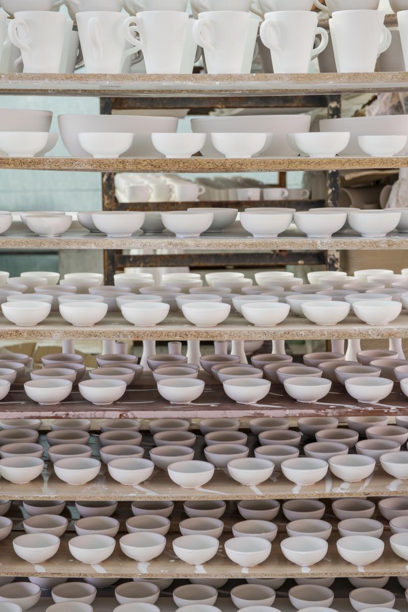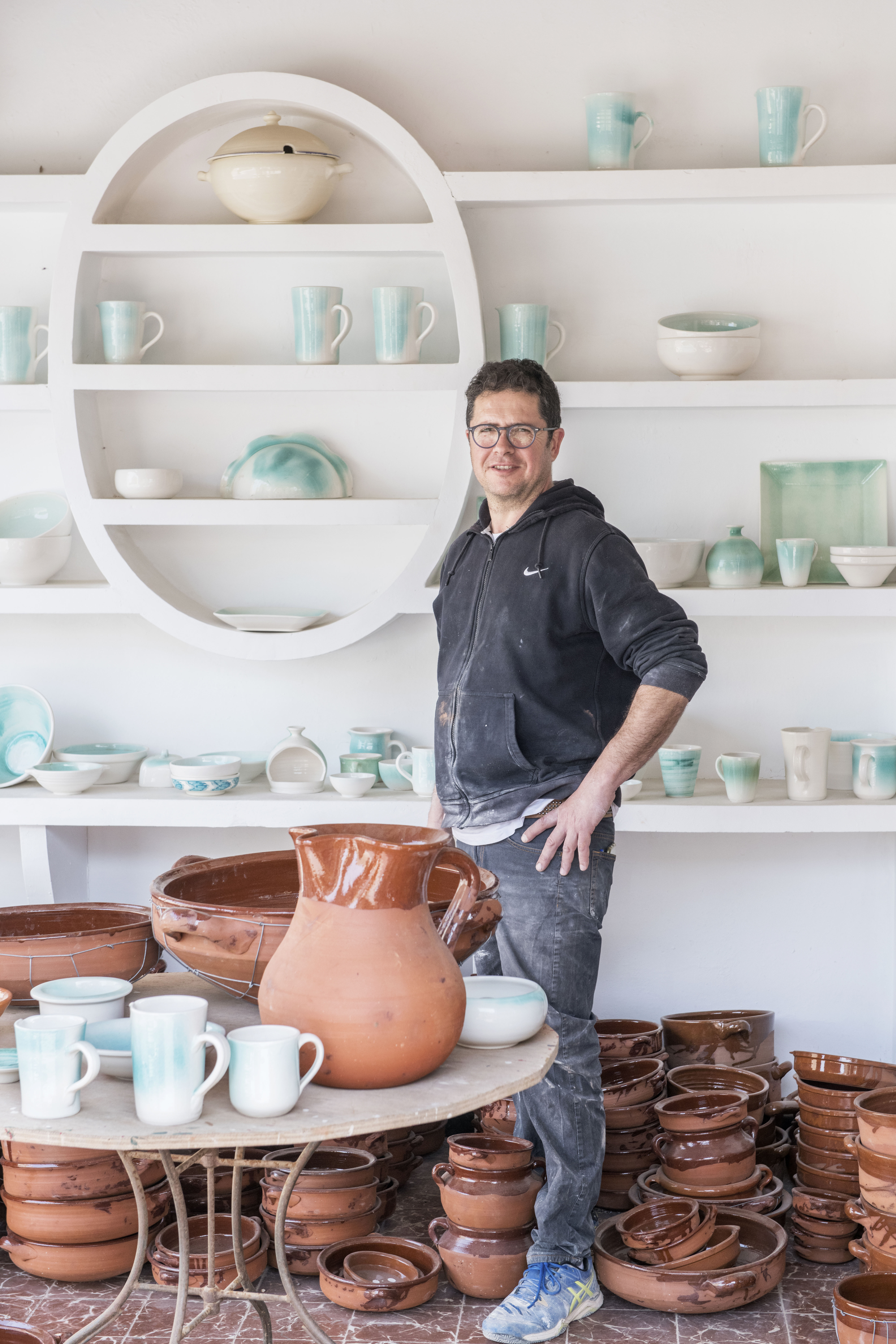 Grytor, fat, skålar, tallrikar, muggar, prydnadsföremål och så vidare i både brun terrakotta och vit lera, målat och omålat. Mönstrat och enfärgat. Allt handgjort i fabriken i Portols.