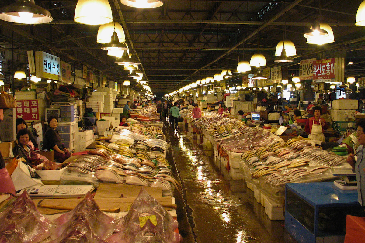 Tsukiji i Tokyo må vara världens största, men fiskmarknaden Noryangjin i Seoul – uppförd 1927, flyttad till sitt nuvarande läge vid Hanfloden 1971 – är en oslagbar orgie i färg, form och sprudlande folkliv. Till det kommer visserligen också odörer, men det är ett bagatellartat belopp att betala för sådan matperfektion.