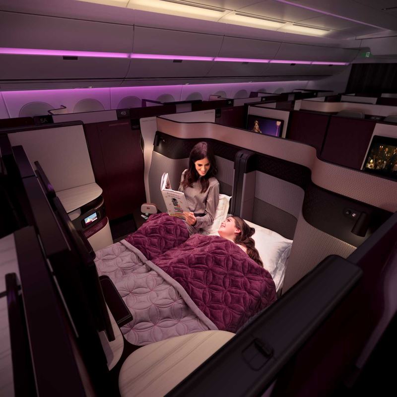 Qatar Airways extremt lyxiga Qsuite är något utöver det vanliga och har branschens första dubbelsäng. Från den 28 oktober kommer den att finnas på fygbolagets rutt mellan Stockholm och Doha.
