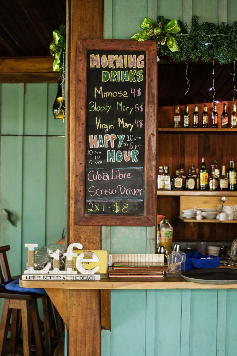 När vi vill ha omvärldsstimulans cyklar vi till Puerto Viejo. Kustsamhället är något av ett nav i Talamancaregionen, där en stor del av Costa Ricas afrokaribiska befolkning och flera urfolk, bland annat bribri och cabecar, bor. Här finns en liten bykärna i bjärta kulörer kantad av kaféer, yogastudior, hantverksgallerier, bagerier och vägglösa barer med jordgolv. Mer romantiskt rustikt än fashionabelt chict – ”lite som Tulum för 30 år sedan” får vi höra. Här finns fler regelrätta bostäder än semesterboenden och cash is definitely king.