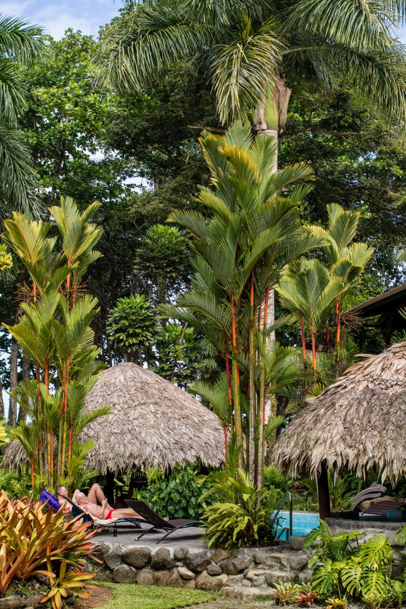 Här tas även privata initiativ för att bevara naturen. Vårt tillfälliga hem Congo Bongo är ett sådant. Det ligger inne i djungeln precis utanför Manzanillo, den sista lilla kustbyn innan den täta regnskogen tumlar in i Panama. De åtta stugorna saknar väggar och dörrar, det är bara i de myggnätsskyddade sovrummen som det går att stänga om sig. Allt görs med så lite påverkan på miljön som möjligt: byggmaterialen är återvunna, rengöringsmedlen biologiskt nedbrytbara och källsorteringen noggrann.