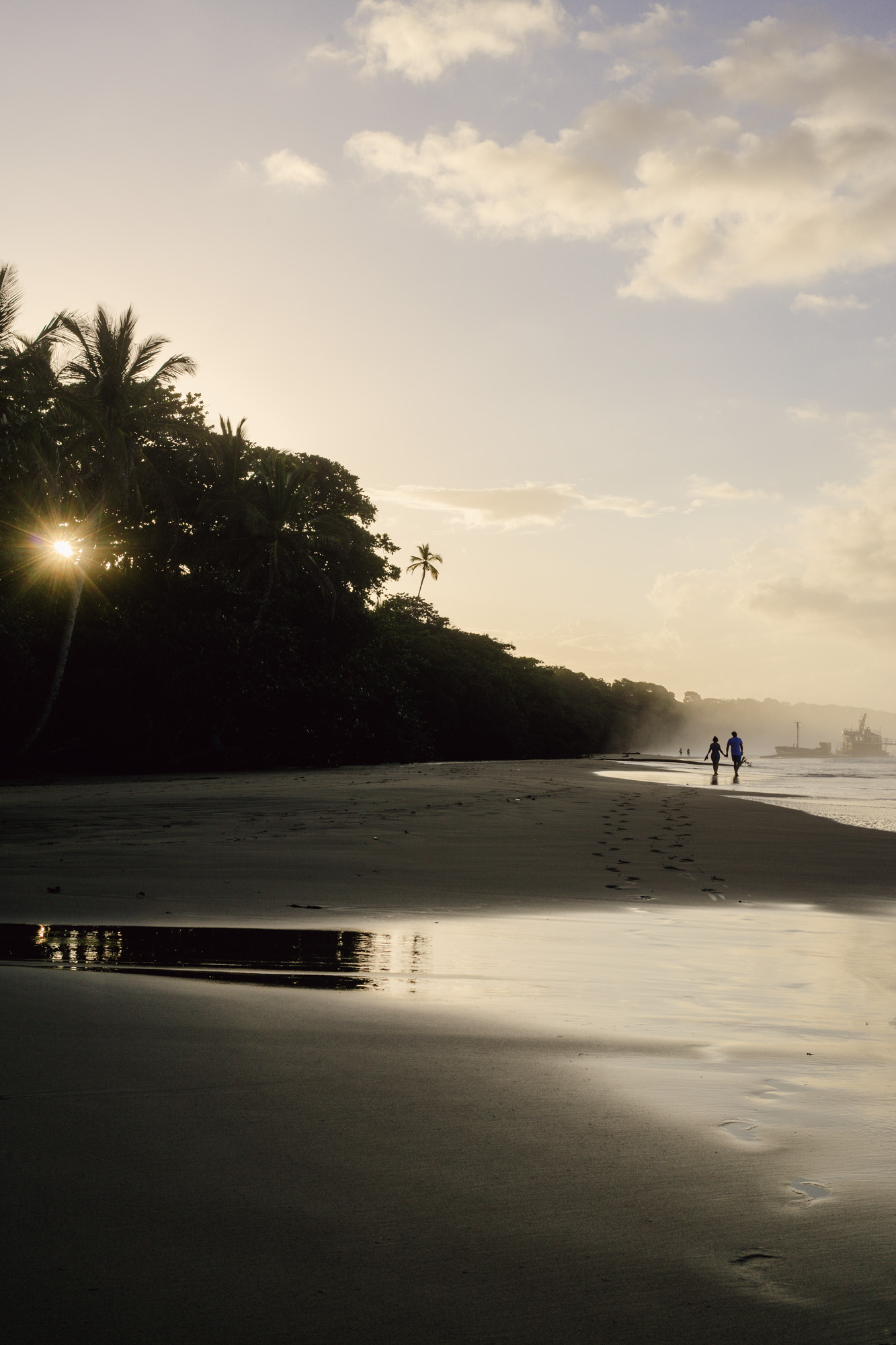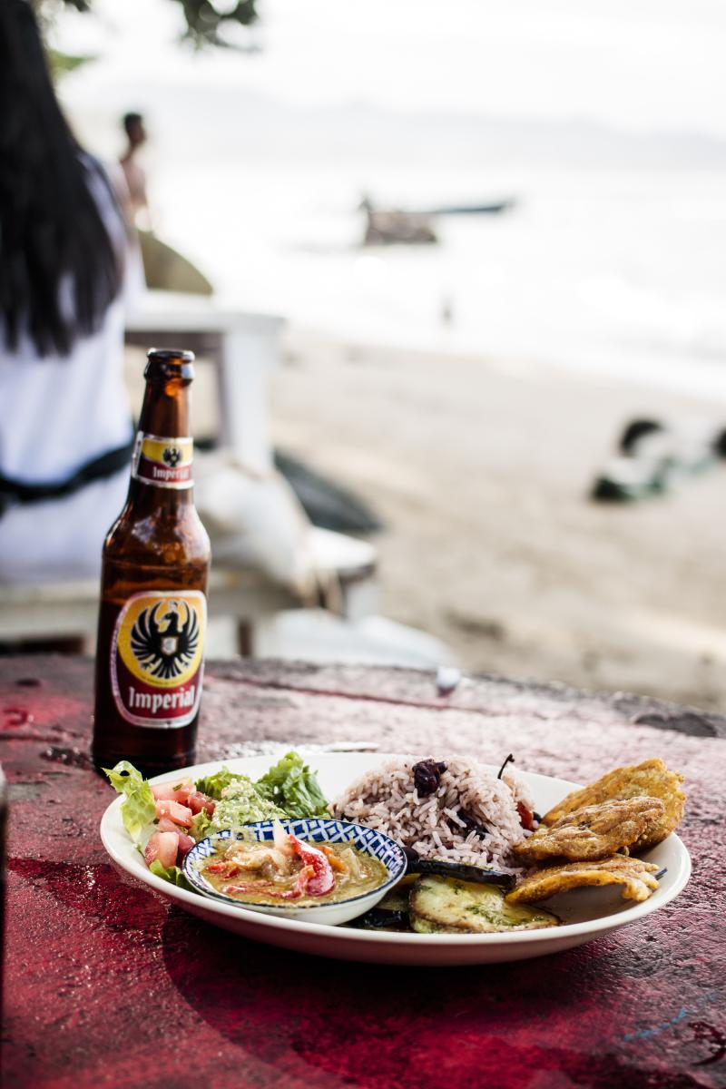 Playa Cocles, Playa Chiquita, Punta Uva: namnen skiljer sig åt men de är alla vita och mjuka. Några av dem delar vi med barnfamiljer, andra med backpackers. Flera av dem är folktomma. Utmed vägkanten säljs kakaofrukter, bananer och grönsaksfyllda tamales. När solen gassar på som mest återhämtar vi oss med en iskall lokal Imperial-öl på veganvänliga Gypsea. Sedan fortsätter vi vidare genom djungeln där vi bor, ut till vilda Playa Manzanillo som är en av de där tropiska stränderna som vi alltid får för oss själva. När hungern slår till trampar vi vidare söderut till minisamhället Manzanillo där det serveras eldpinade grönsaker och färsk ceviche på plastbord.