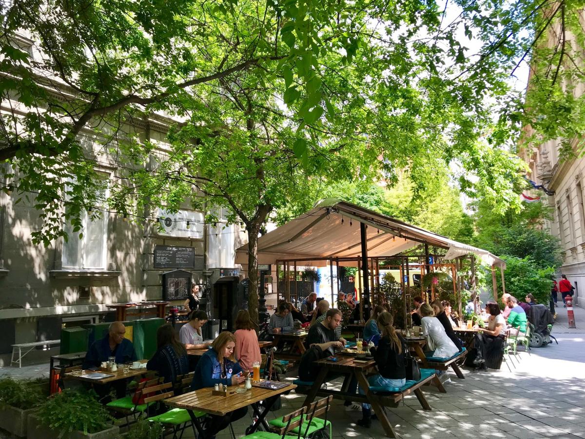 Varje söndag omvandlas den populära baren Szimpla Kert till en färgglad och folkfylld matmarknad där lokala bönder och mathantverkare säljer egengjord korv, ost, marmelader, ekologiska frukter, grönsaker och andra delikatesser. Jag har ofta önskat mig möjligheten att provsmaka allt i lugn och ro. Och plötsligt hände det: Szimpla Kert kom på den geniala idén att komplettera sin marknad med en brunchbuffé. På övervåningen dukas det numera upp ”Farmer´s breakfast”, en buffé av råvaror från marknaden varje söndag. Det är närodlat, färskt, vällagat och prisvärt: ca 160 kr.