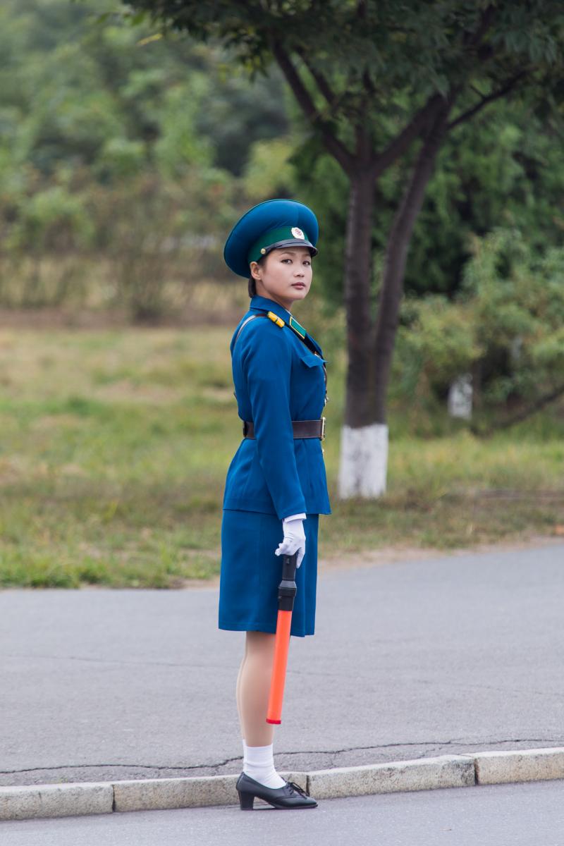 Nordkorea består till 80 procent av bergsområden. Vi reser i ett bedövande vackert landskap med bördiga slätter och risodlingar mellan gröna berg. Av någon anledning hade vi förväntat oss ett land där det mesta var svartvitt, eller 40 nyanser av brunt. Vi reser med buss på stora och nästan öde, autobahnliknande vägar. De är inte bara till för persontransporter utan även för truppförflyttningar. Landet ligger ju fortfarande i krig med Sydkorea. Vi måste ofta stanna för att någon militärpostering ska kontrollera våra papper. Då råder strikt fotoförbud.