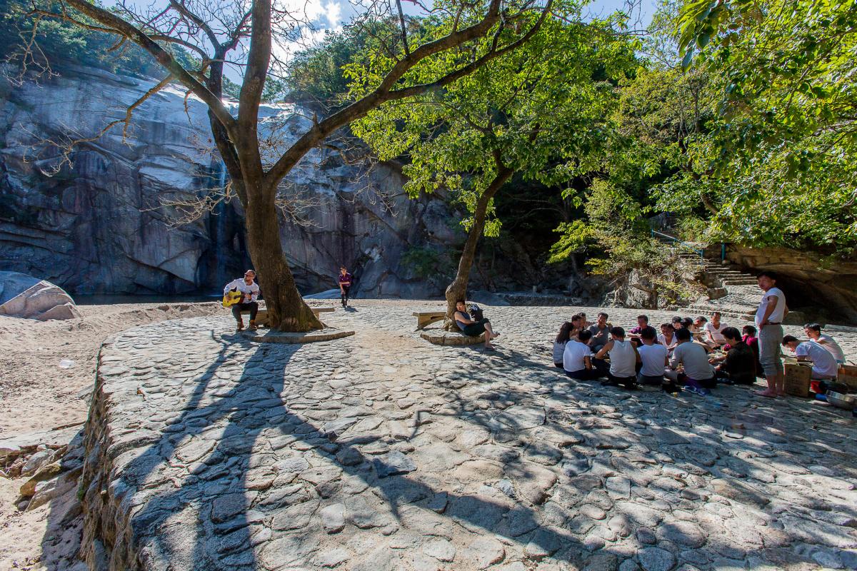 En glest trafikerad serpentinväg tar oss upp i bergen vid skidorten Masik Ryong, inte långt från hamnstaden Wonsan, ungefär 20 mil från Pyongyang. Vi stannar längs vägen för att dricka några klunkar vatten. Hejar på några militärer och möts av breda leenden. Andra koreaner vi stöter på fnissar och tittar blygt. Våra tafatta försök att uttala deras hälsningsfras, ”an-nyeong-ha-se-yo”, möts av vänliga skratt. Det är tydligt att nordkoreanerna inte är vana att möta blekansikten som oss.