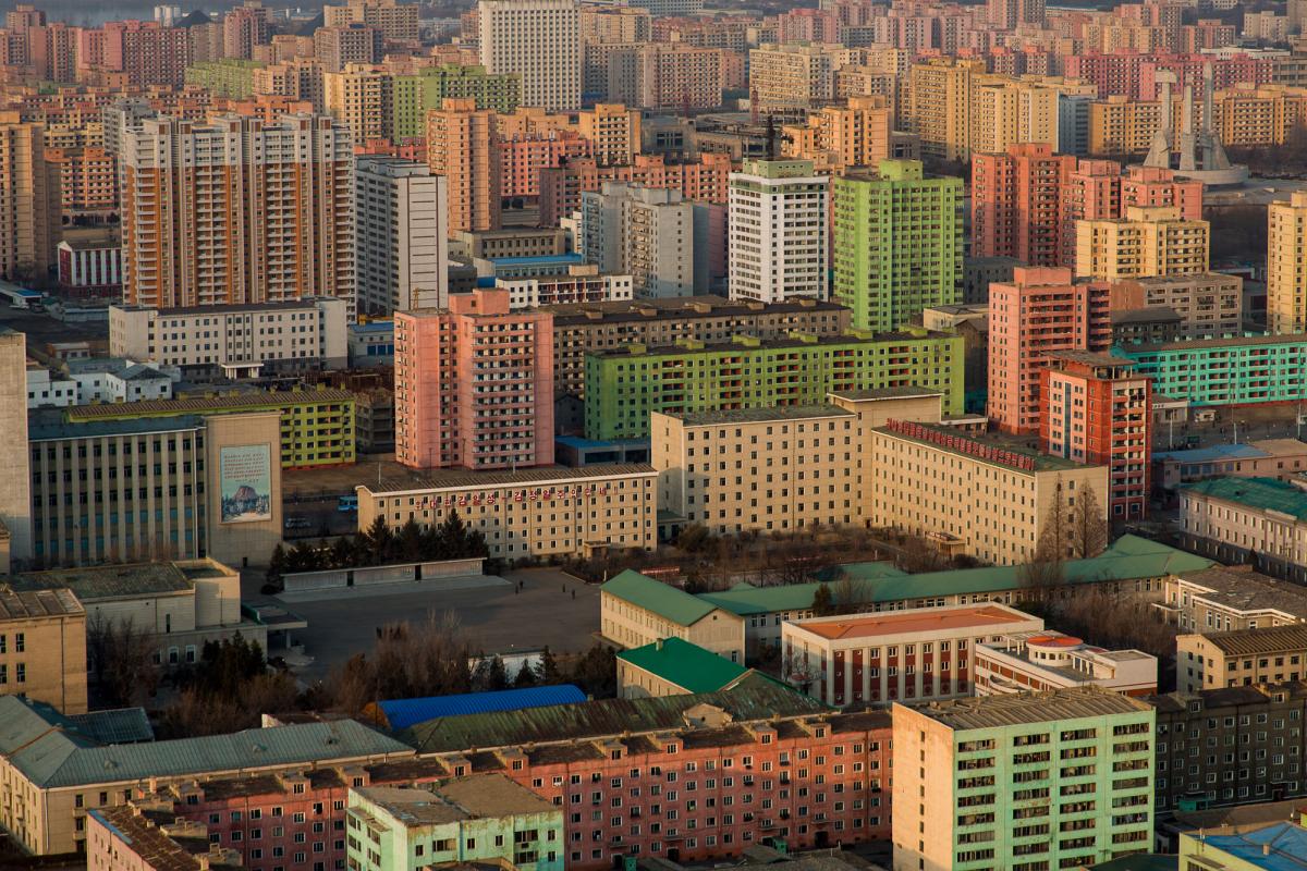 Stadsbilden i Pyongyang skiljer sig från alla andra moderna storstäder. Här finns inga neonskyltar med reklam för cigaretter eller ohälsosam mat. Eller kapitalistiska imperialistiska budskap, om vi väljer den nordkoreanska synvinkeln. I Pyongyang finns i stället väggmålningar och mastodontskyltar med historiskt viktiga händelser ur Koreas moderna historia – våra guider refererar alltid till Nordkorea som Korea eller ”vårt land”, eller möjligtvis DPRK (Democratic People’s Republic of Korea). Det framgår tydligt att de tycker att Korea borde vara ett land.