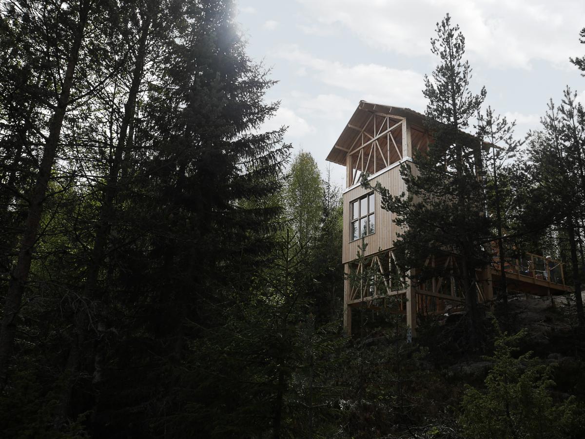Högt uppe på Åsberget vid Orbaden i Hälsingland gömmer sig ett tio meter högt trähus med en storslagen utsikt över Ljusnans dalgång. Den arkitektritade träkojan är byggd av obehandlad kärnfuru och består av två rum. Takrummet saknar väggar, vilket ger 360-gradig utsikt och en känsla av att vara ett med naturen.