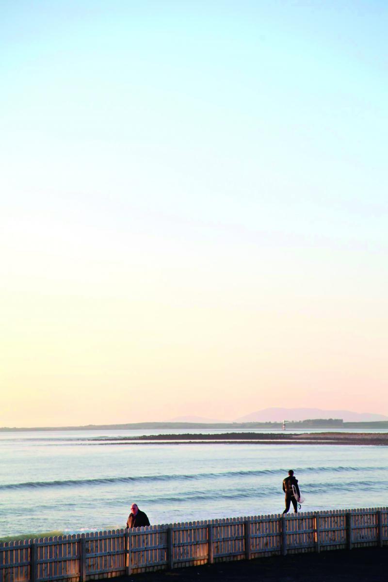 Sandhouse Hotel ser ut som något ur en film där det ligger i ensamt majestät på sandstranden. På en morgonpromenad kan man iaktta tidvattnets rörelse, det förflyttar kustremsan en rejäl bit fram och tillbaka varje dag. Här har man också goda möjligheter att se både delfiner och valar sägs det, och mycket riktigt, när jag kommer tillbaka från min promenad får jag höra att de i sällskapet som valde att stanna inne i värmen och fika minsann sett delfiner från restaurangfönstret. Nåja, jag fick rejält med frisk luft, tidig morgonsol, måsarnas välkomnande skrik och en promenad som sitter kvar länge i kroppen.