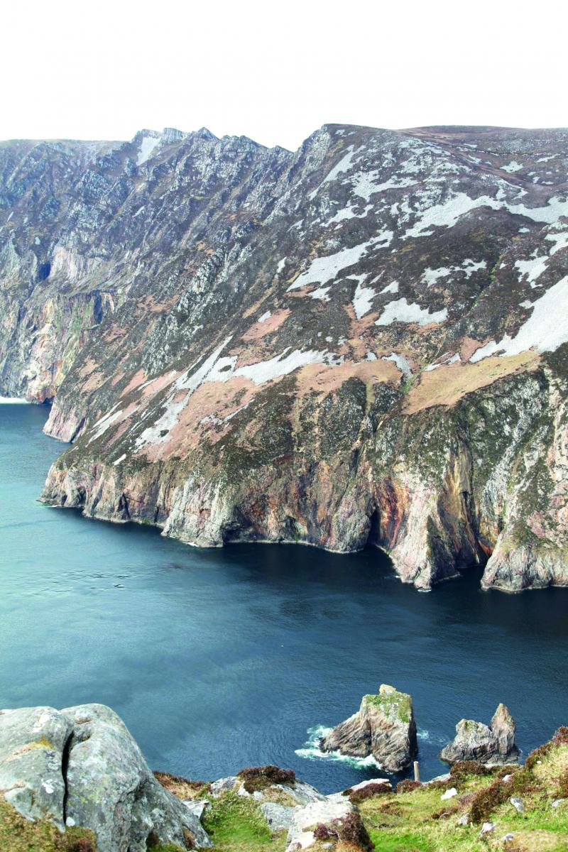 Vi fortsätter vår resa norrut längs Wild Atlantic Way och kommer in i Donegal, ett kargt och bergigt landskap varvat med vikar av långa sandstränder. Här finns bland annat Europas högsta havsklippor, Slieve League. De reser sig över 600 meter över havet och bjuder på en svindlande vacker utsikt. Högt uppe bland klipporna låg tidigare ett munkkloster, och marken anses fortfarande vara helig av många.