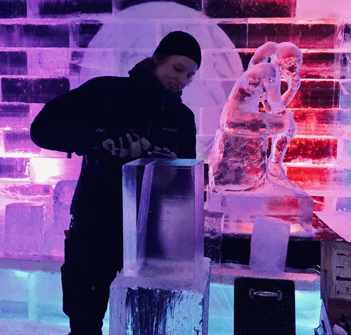 Om man vill pröva på och vara konstnär och få en kreativ upplevelse kan man gå en kort kurs i isskulptering. Det är en läcker känsla att med verktyg som stämjärn och olika sågar försöka skapa sin egen isskulptur av ett isblock. Det vanligaste motivet tycks vara ett hjärta, ett kors eller en frukt.