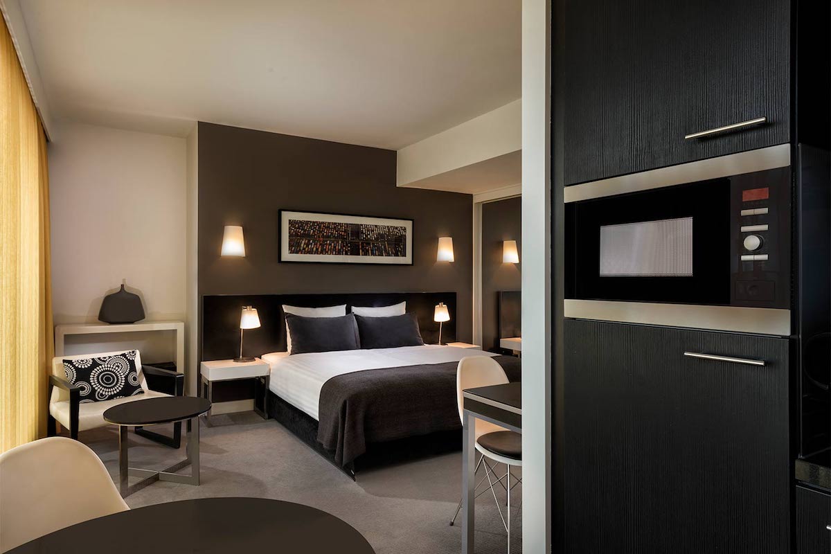 Här hittar du modern elegans i hjärtat av Mitte. Rymliga lägenheter med fullt utrustat kök ger känslan av hemma, vilket passar dig som antingen stannar lite längre i staden eller reser med familjen och inte vill äta på restaurang varje dag.