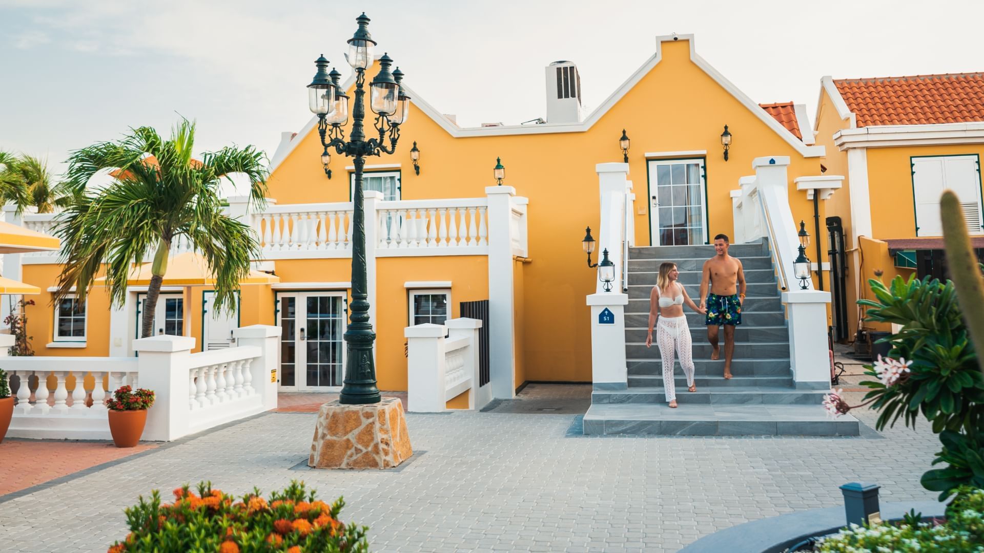 Mitt framför hotellet, på andra sidan gatan, växer Arubas mest kända symbol och mest fotograferade objekt – det kända Fofotiträdet, på vackra Eagle Beach.