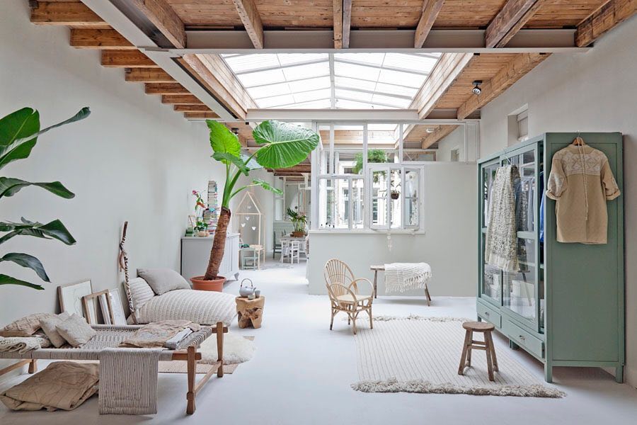 Särskilt möblerna sticker ut och får dig att drömma dig bort till en stressfri harmonisk yogatillvaro. Hammockar, dagbäddar, inomhusgungor och vackra mattor och plädar är den ultimata lyxen för den moderna nomaden. Det var länge sedan ekologiskt och etiskt mode var lika med trist!