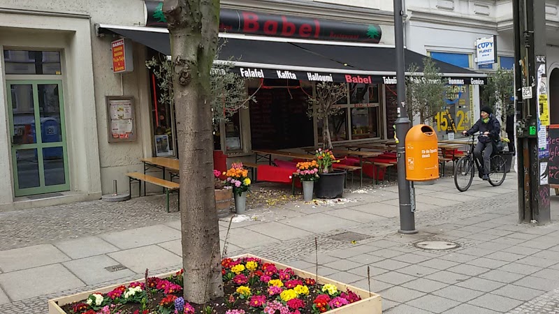 I närheten av mysiga Eberswalder Strasse hittar du denna lilla pärla. Babel är egentligen mer ett hål i väggen än en riktig restaurang men det finns några bord inomhus. Speciellt sommartid funkar det bra ändå, eftersom ägarna ställer ut långbord på gatan som de översållar med blommor i regnbågens färger. Deras Babelplatte rekommenderas varmt, antingen med kött eller helt vegetarisk, båda är lika goda. Maten är hemmagjord med mycket kärlek och man får ordentliga portioner för en liten slant. Baba ganoushen får man absolut inte missa!