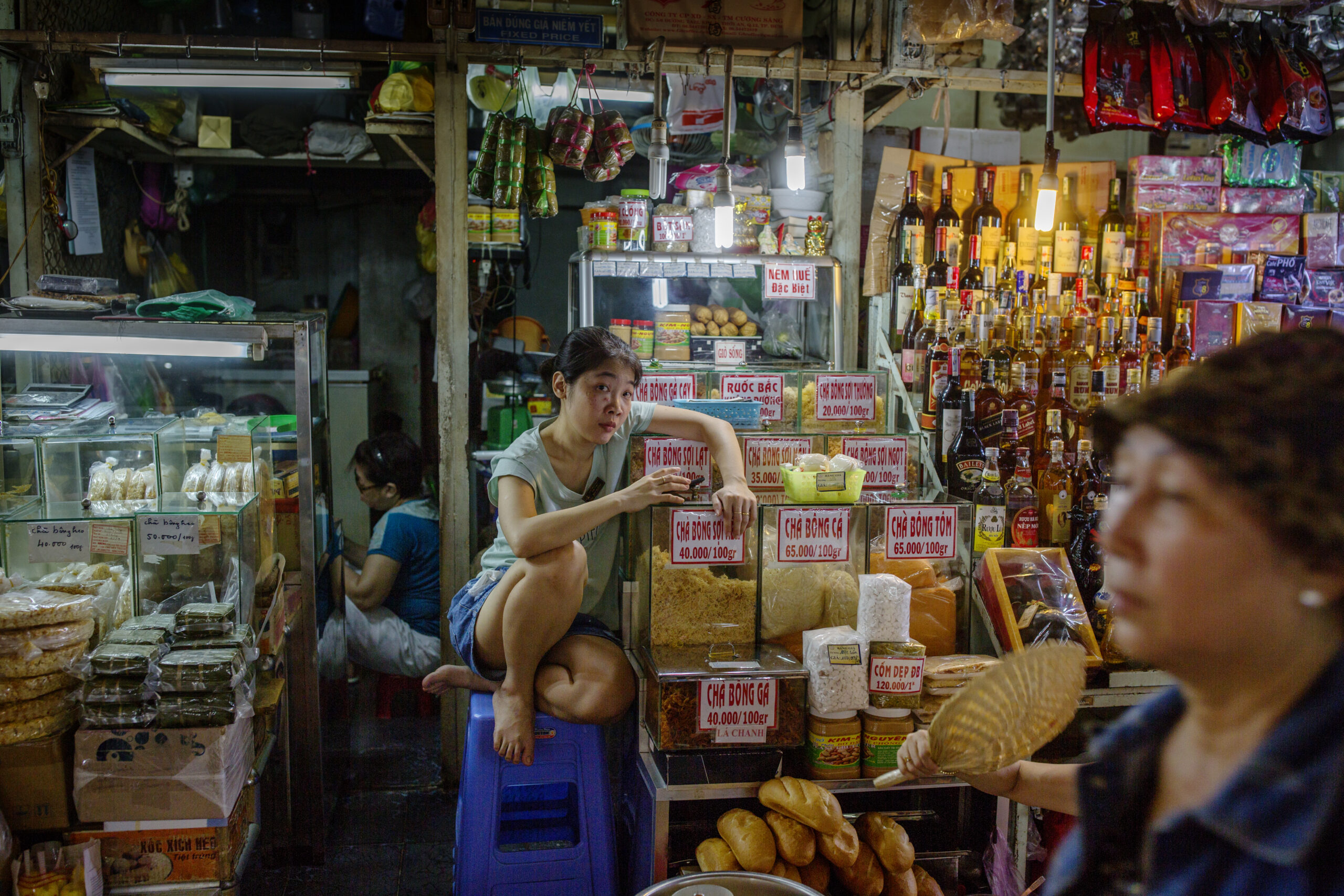 På Bến Thành Market hittar du ett stort utbud av kläder och prylar, men också mycket att äta.