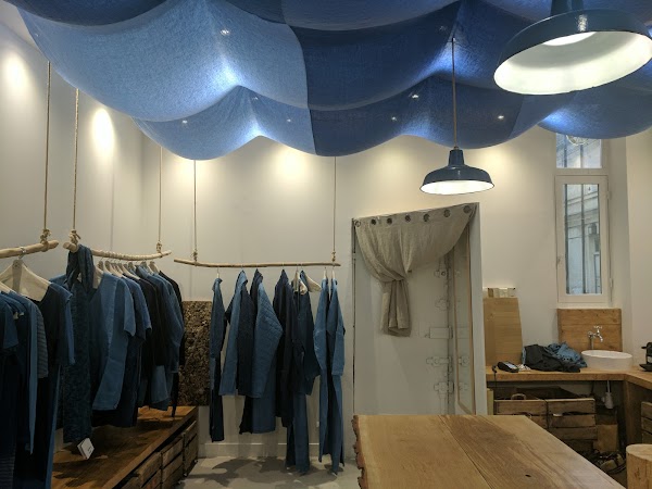 Butiken för den som älskar färgen blå och indigo. Här säljs franska linne- och bomullskläder färgade blå med botaniska färgmedel.