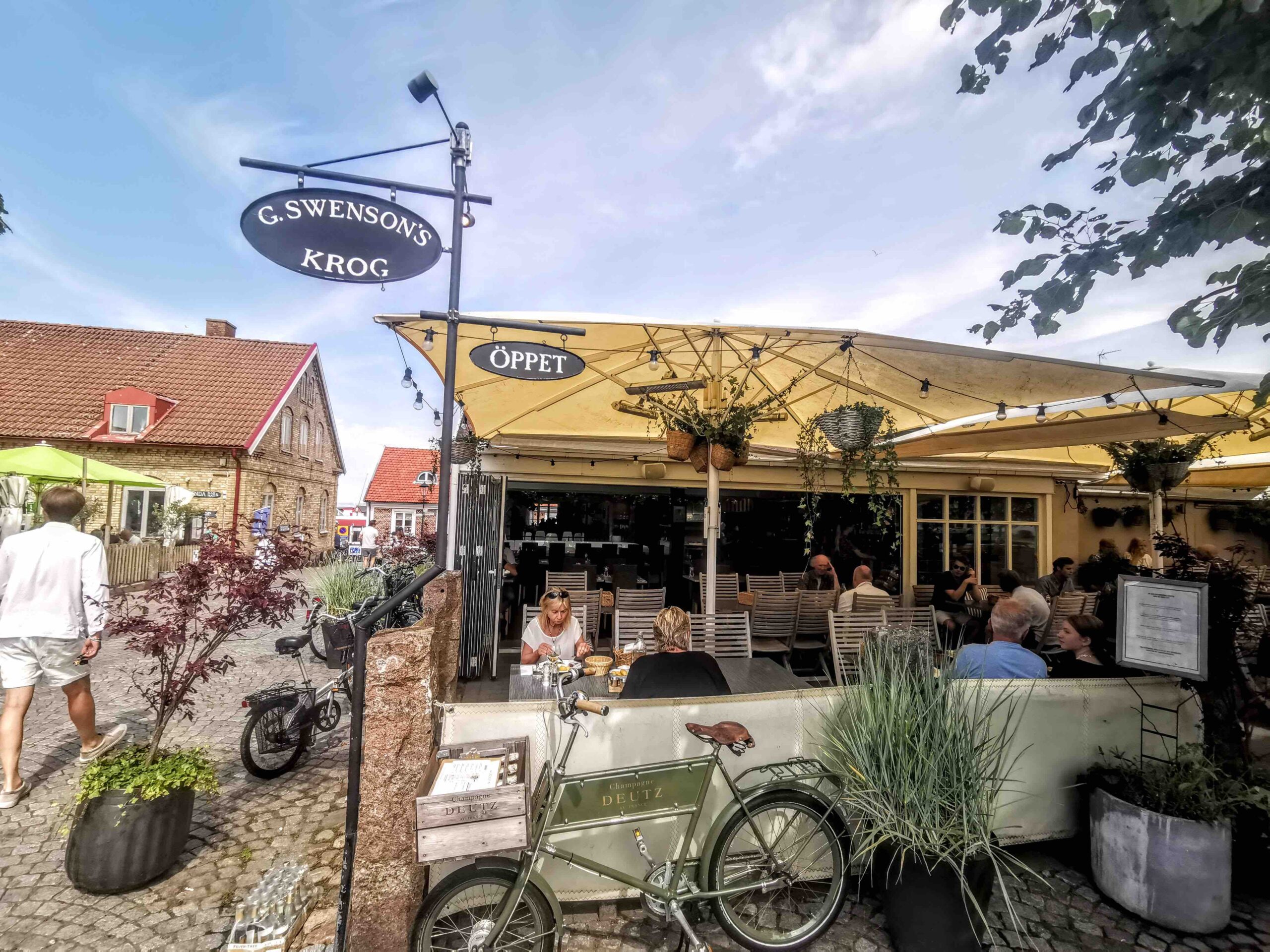 Lunch i Torekov äter du på G. Swensons ett stenkast från hamnen. Det är ungefär som att befinna sig på Stureplan en lördag. Örnen som alla vill se heter Hugh Grant, han lär ha ett hus precis bredvid hotellet, men vi ska erkänna att vi aldrig sett honom mer än på tv.
