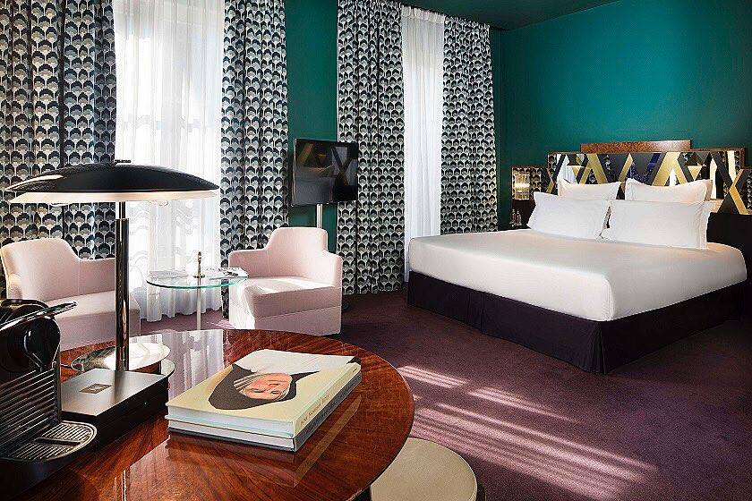 Mycket färg men dova toner bäddar för en härlig retreat i det hektiska Paris. Byggnaden som nu inhyser Hotel Saint-Marc har en lång historia, bland annat som privat residens åt Louis XV:s politiska rådgivare. Färgsättningen i rummen är vågad med mörka blå väggar som möter lyxiga textilier i guldsammet, djupröda detaljer och tunga gardiner i knasiga mönster. En lyckad balansgång mellan lyxig känsla och trendkänslig estetik. Perfekt placerat i andra arrondissementet. Vill man ha ytterligare anledning att stanna på hotellet så finns här ett hamam och en läcker pool.