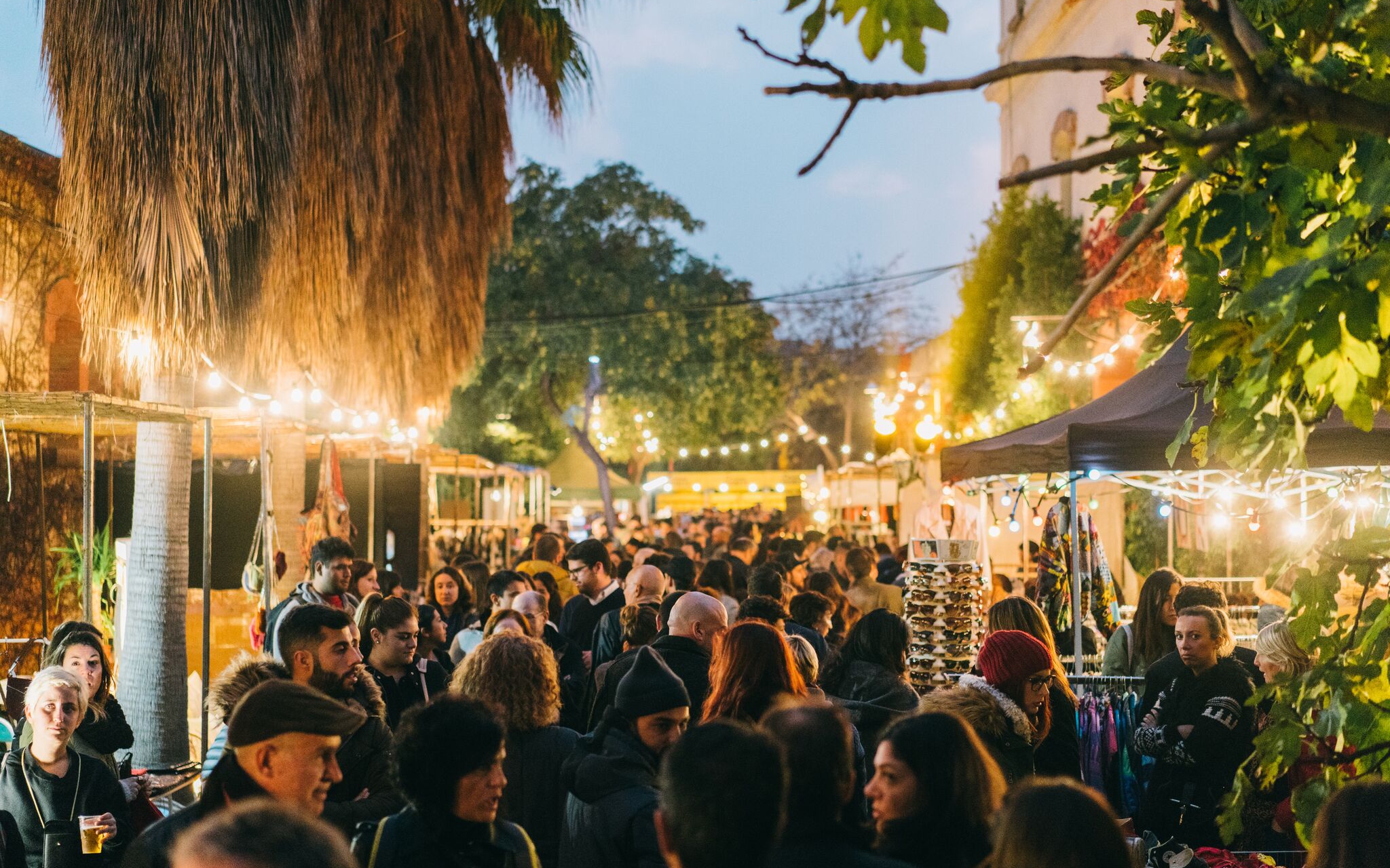 En gång i månaden ställer Palo Alto till med en färgsprakande gatumarknad och livemusik i en gammal fabrikslokal med trädgård i området Poble Nou.
