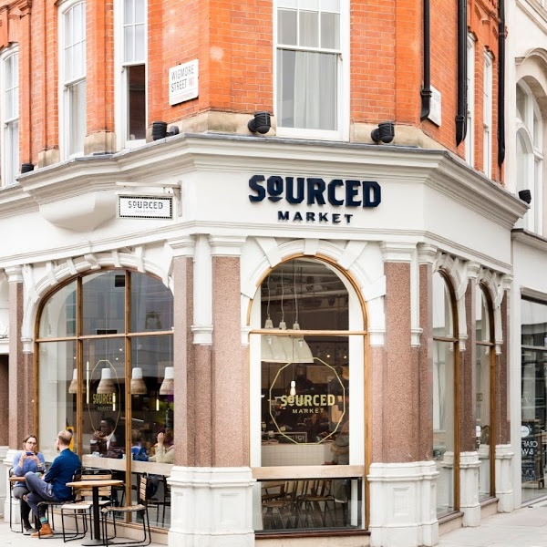 Marylebone är en av de finaste delarna av centrala London – lite lugnare, lite dyrare – och ett perfekt område för matmarknaden och kaféet Sourced Market. Här kommer maten från de allra bästa små leverantörerna och det finns mycket att välja på: allt från charkuterier och öl från mikrobryggerier till lyxig olivolja, nougatmarshmallow från Mallow & Marsh och goda munkar från Crosstown. Bra ställe för en lunchpaus efter shopping i centrum eller för matälskaren som vill köpa med sig något lite lyxigare hem. Snygg, industriell inredning som inspirerar.