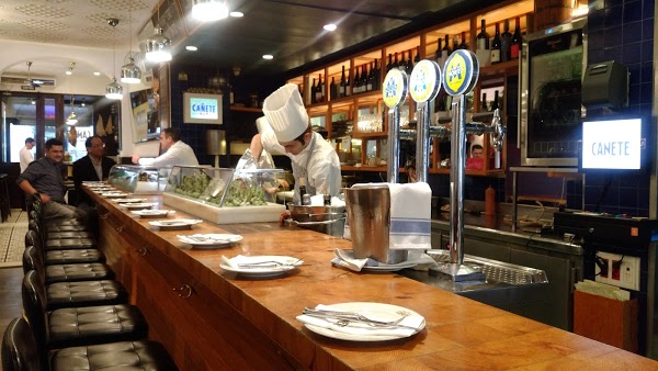 För den som letar efter en lite finare, klassisk tapasbar är bardelen på Bar Cañete ett perfekt alternativ. I denna röjiga, men lyxiga restaurang sitter majoriteten av besökarna i baren, där kockarna i det öppna köket lagar tapas med en modern twist. Ofta behöver du inte ens läsa menyn utan bara peka på de rätter som i snabbt tempo serveras direkt från köket. När notan kommer blir du positivt överraskad. God idé att boka bord med några dagars marginal.