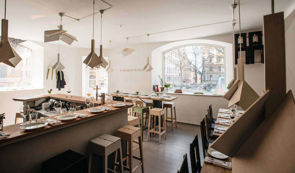 FOODIE KVARTERSKROG Inredningen är speciell. Ja, konstig är kanske en bättre beskrivning. Modern design är inte alltid lättsmält. Här sitter du trångt, ja… tillsammans med alla andra. Så är det för att dela hemligheter som du befinner dig på restaurang – välj en annan krog. Men vill du äta raffinerad husmanskost gjord med lika delar kärlek och innovation är Wood en perfekt krog. Eftersom alla sitter tillsammans uppstår ofta samtal mellan gäster som inte känner varandra sedan tidigare. De lämnar ibland krogen som vänner. Har du väl hittat hit är du liksom automatiskt en i gänget: vi som älskar egensinnig, välgjord mat.