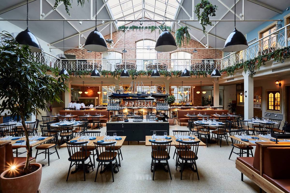 Den rymliga lokalen består av olika rum och terrasser, där menyerna skiljer sig åt. I det ena hittar du fisk, i det andra kött.