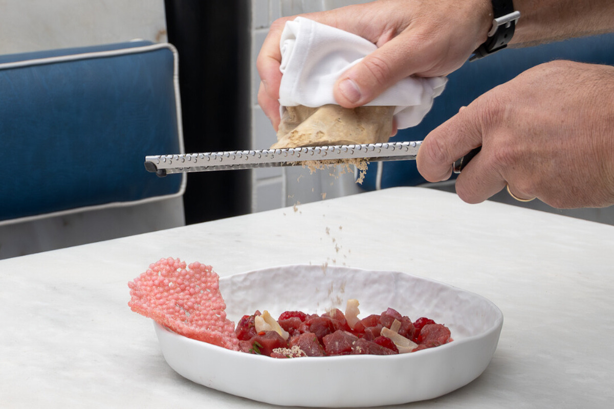 Restaurangen har en Michelinstjärna och plats till 22 sittande gäster samtidigt, som alla har utsikt över det öppna köket.