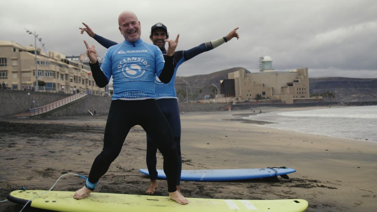 Den långa sandstranden i Las Palmas, Las Canteras, är inte bara en plats för sol, bad, strandsport och umgänge – här finns en surfstrand som passar utmärkt för såväl nybörjare som mer erfarna utövare av sporten. Hans Fahlén får en kurs av Giuseppe från surfskolan Osceanside.