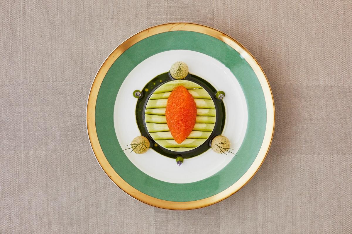 Otroligt mycket vackrare var förrätten på gurka och löjrom från Kalix. I botten fanns även kålrabbi, pepparrot och ganska mycket dill. Jag är alltid skeptisk till kalla förrätter på vintern, men detta funkade mycket bra. Speciellt eftersom förrätten inte bars fram kylskåpskall utan hade fått stå framme en stund och gona till sig. Till detta fick vi champagne som smakade suveränt.