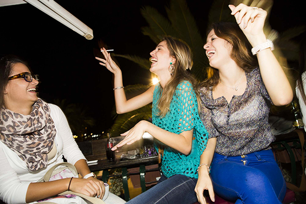 Vid borden kring oss börjar diskussionerna om vart kvällen ska ta vägen starta. Först försiktigt, sedan allt mer högljutt. Stadens invånare gör sig klara för ännu en natt.