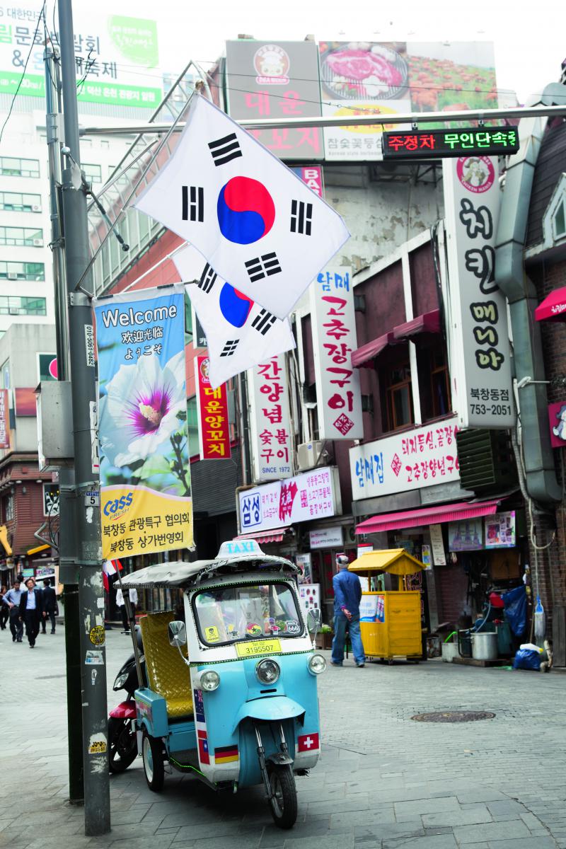 Sydkorea må ha slängt av sig oket från tidigare förtryckare, men med det har man också lämnat mycket av de gamla traditionerna bakom sig. De ultramoderna skyskraporna har namn som Lotte, Samsung, Hyundai och LG, de koreanska teknikföretag som står för en stor del av både BNP och stadsbilden i dagens Seoul.